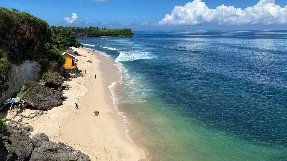 Dream Land Beach is a beautiful beach with white sand stretch 100 meters and leaned on a steep of white stone cliff overlooking to the amazing view of Indian Ocean. Dream Land Beach is very attractive for tourist including the surfers offering the elegant, tranquility and spectacular sunset view that create the romantic nuance that make it as one of the place many visited by tourist every day. Dream Land Beach is located in strategic area of Pecatu Graha, the huge area of luxurious residences, hotels, villas, world-class golf course (New Kuta Golf), water fun game and more that finally make this beach is increasingly popular. The advantages of this Dream Land Beach are big and powerful wave that make it as one of the most demanded surfing points in Bali Island by the experience until professional surfers. You will be very easy to locate the public facilities at this surfing point like restaurant and accommodations. Dream Land Beach is also suitable for family holidays where you can do relax at Dream Land Beach while enjoying the warm tropical atmosphere.