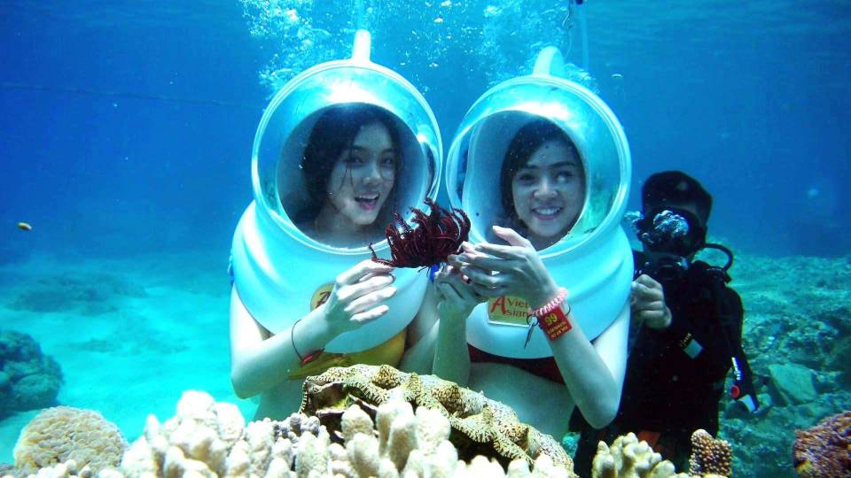 Truly a memorable sensation, where you explore the underwater ocean without making your hair wet and without a swim, just walk follow the tracks provided. Guests with heart problems or lung disease, treatment, pregnancy, asthma or other respiratory diseases, etc. can not dive.